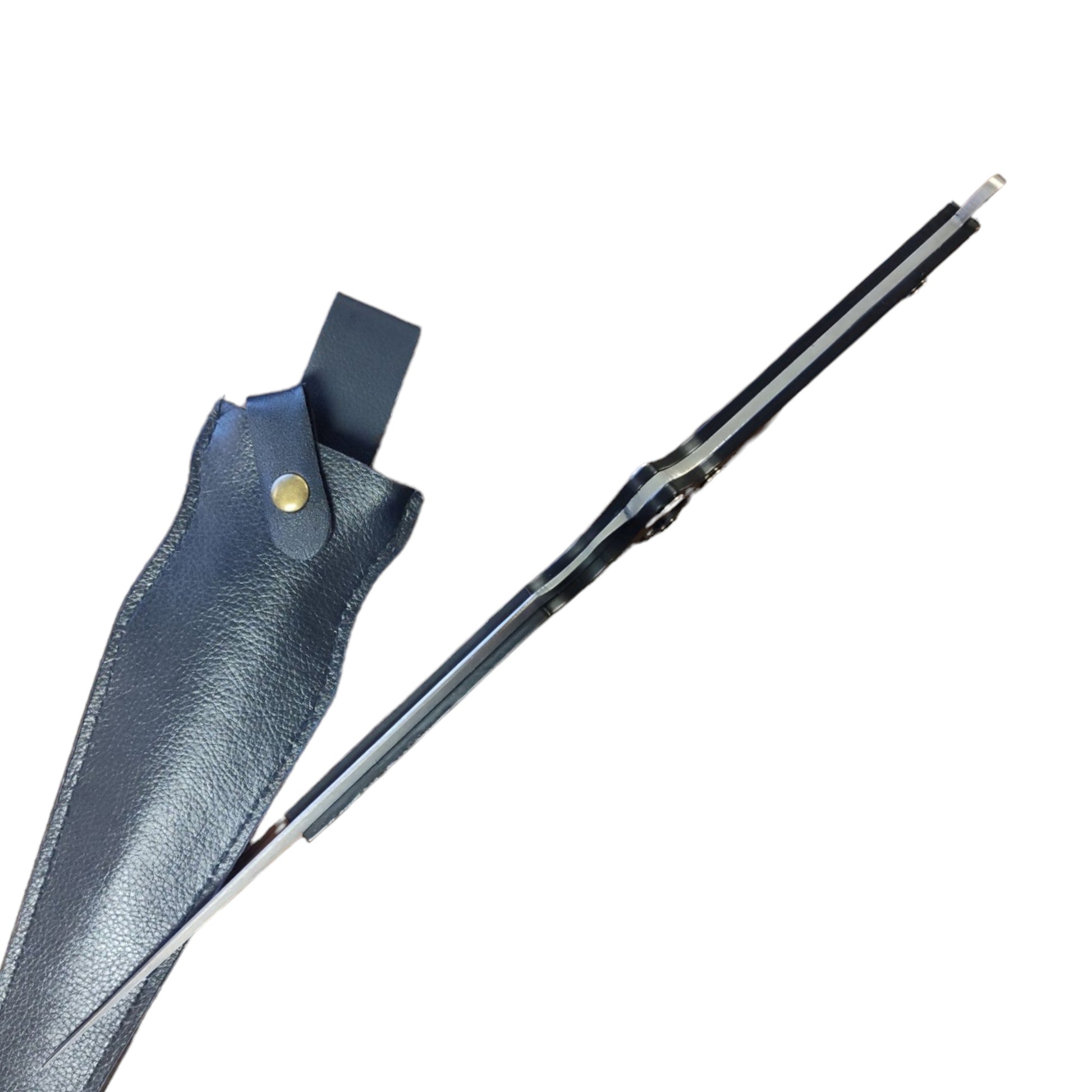 This accessory is a very short dagger with a rounded wrapped handle. The blade of the dagger is silver with black in the center.